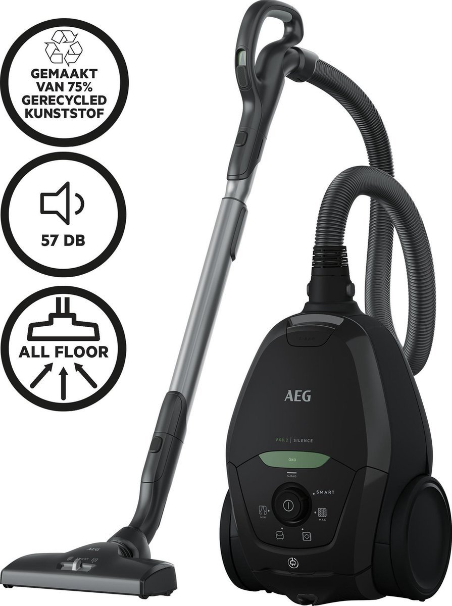 AEG VX82-1-ECO stofzuiger met zak zwart, stil 57dB SmartMode Hepa13 - parketborstel krachtige stille stofzuiger