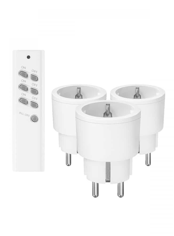 Met deze compacte draadloze schakelaar APC3-2300R kun je je leven net dat beetje makkelijker maken. Deze set bestaat uit drie slimme schakelaars en een afstandsbediening. Plaats de schakelaars in een bestaand stopcontact en sluit hierop bijvoorbeeld je verlichting of andere apparaten aan. Met de meegeleverde afstandsbediening kun je de nu apparaten op afstand aan- of uitzetten.