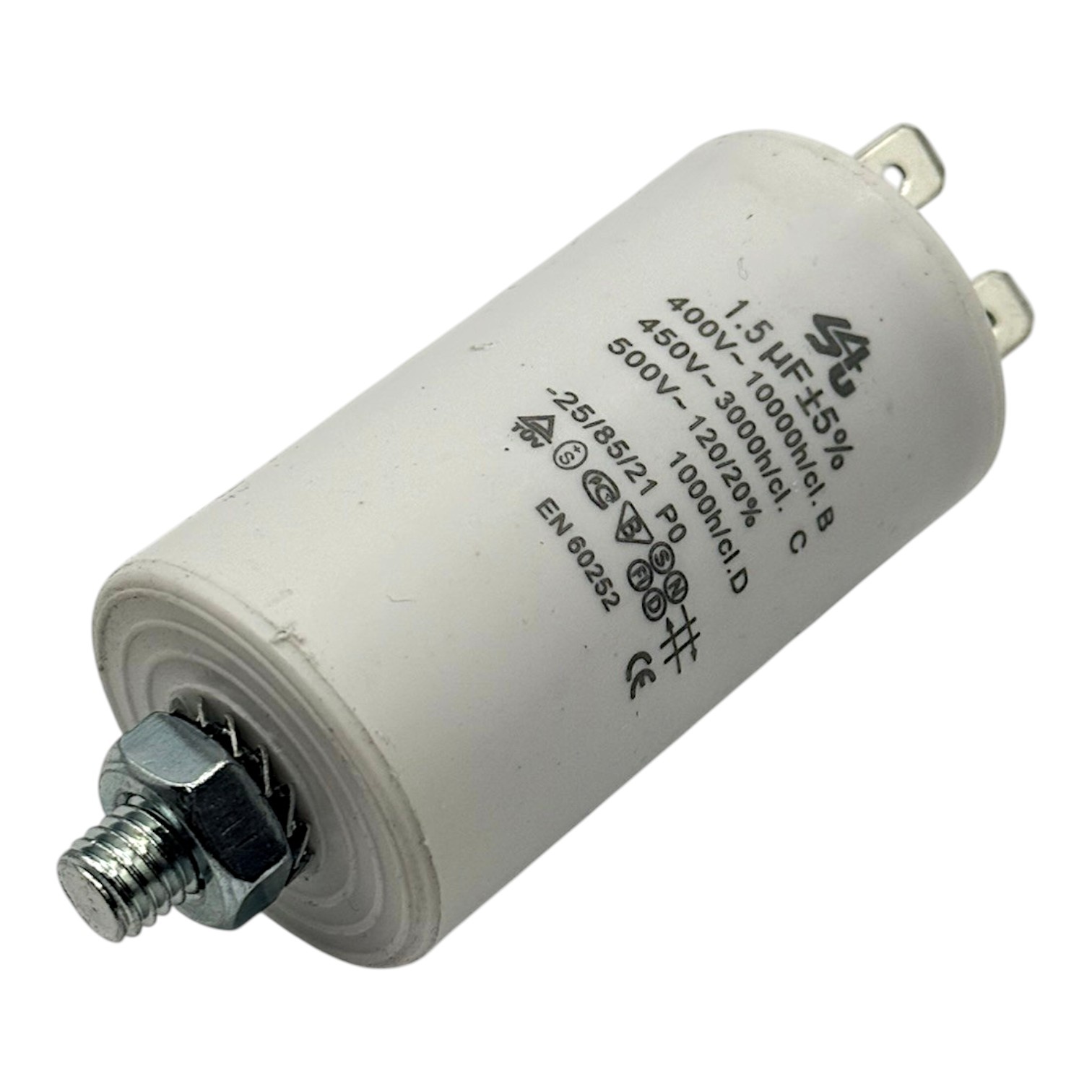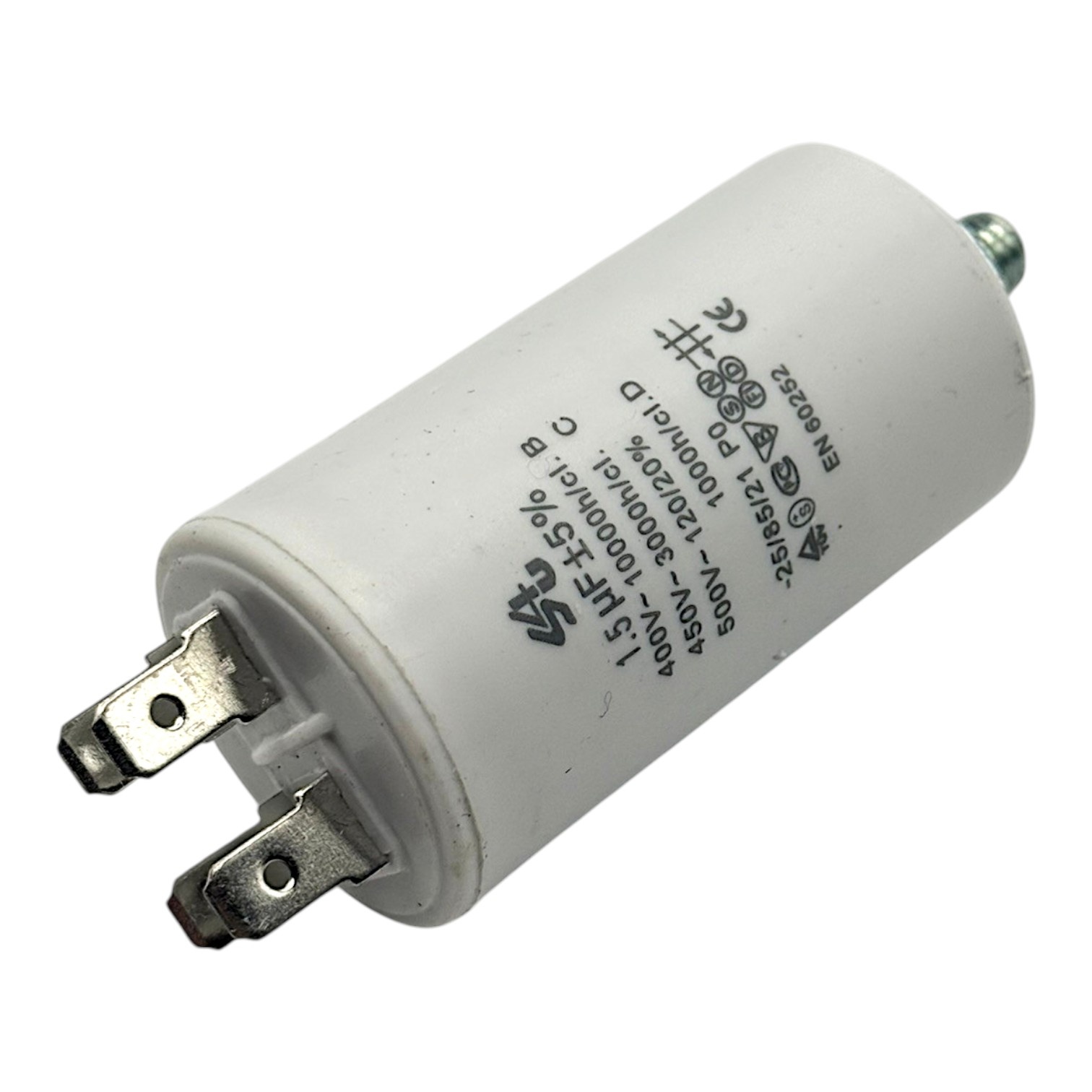 Zorg voor een betrouwbare werking van je apparaat met deze condensator van 1.5 uF. Deze aanloopcondensator is geschikt voor diverse toepassingen in huishoudelijke apparaten en beschikt over meerdere aansluitpunten met stekkerverbindingen. Dankzij het montage draadeind is de condensator eenvoudig en stevig te bevestigen.
