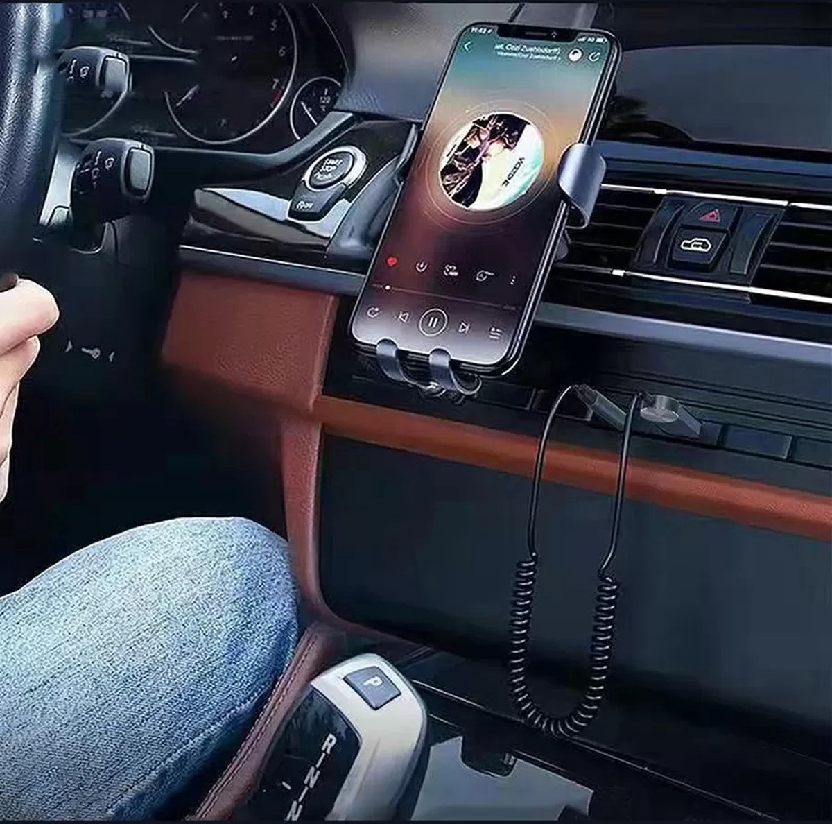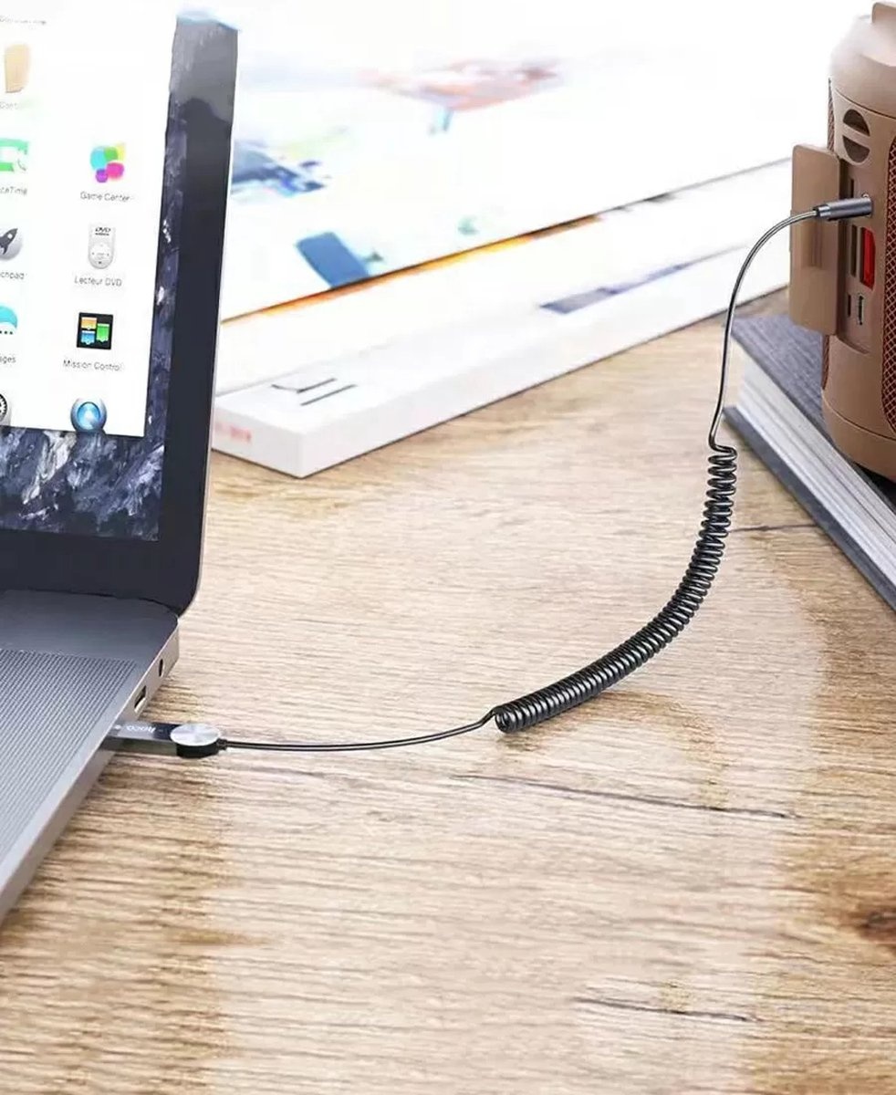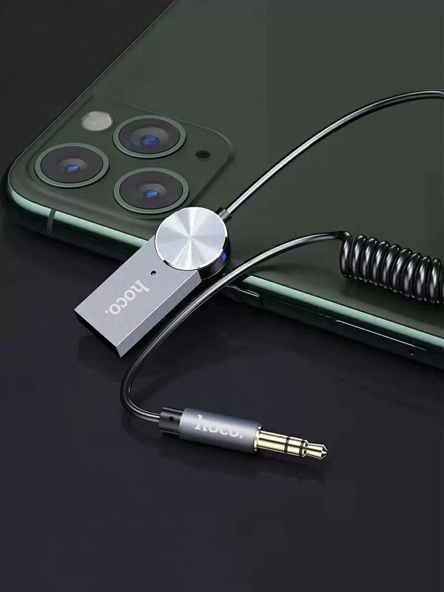 Hoco In Car Bluetooth Audio Receiver via AUX, Bluetooth 5 0, Met Microfoon en Springkabel