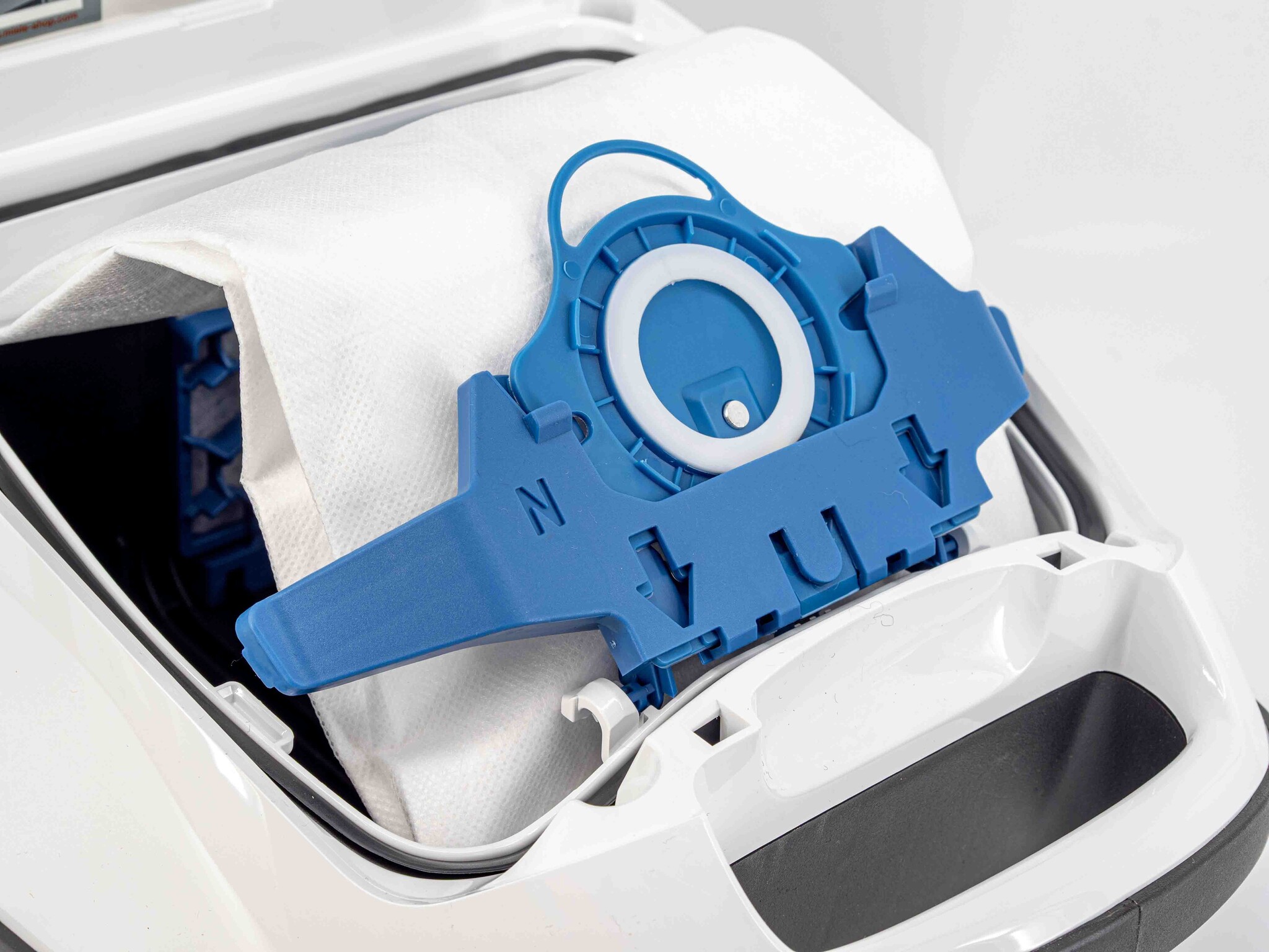 De geïntegreerde hygiënesluiting maakt het verwisselen van de zak schoon en eenvoudig, zonder dat stof vrijkomt.