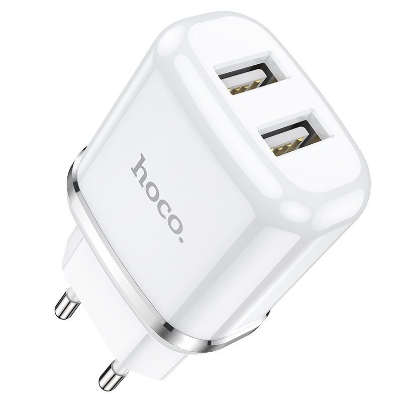 Hoco N4 USB oplader 2 poorten 2.4A wit - dual charger EU stekker snellader telefoon tablet