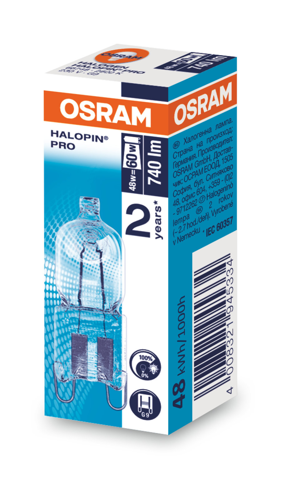 Osram 230V G9 48W = 60w Halopin Pro