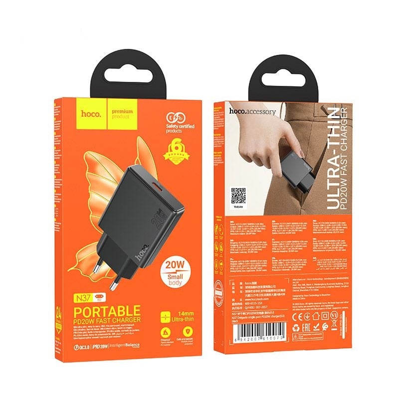 Hoco USB C snellader 20W PD PPS QC3.0, wandoplader USB C - fast charger iPhone Samsung oplader USB C