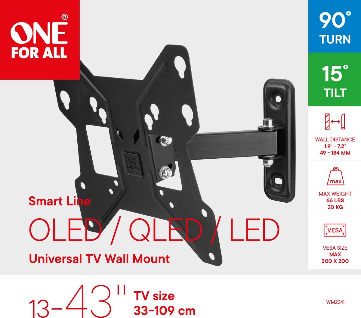 WM2241 Muurbeugel Draaibaar en Kantelbaar 13-40 inch Geschikt voor TV Schermen VESA 75x75 tot 200x200 Max 30 kg